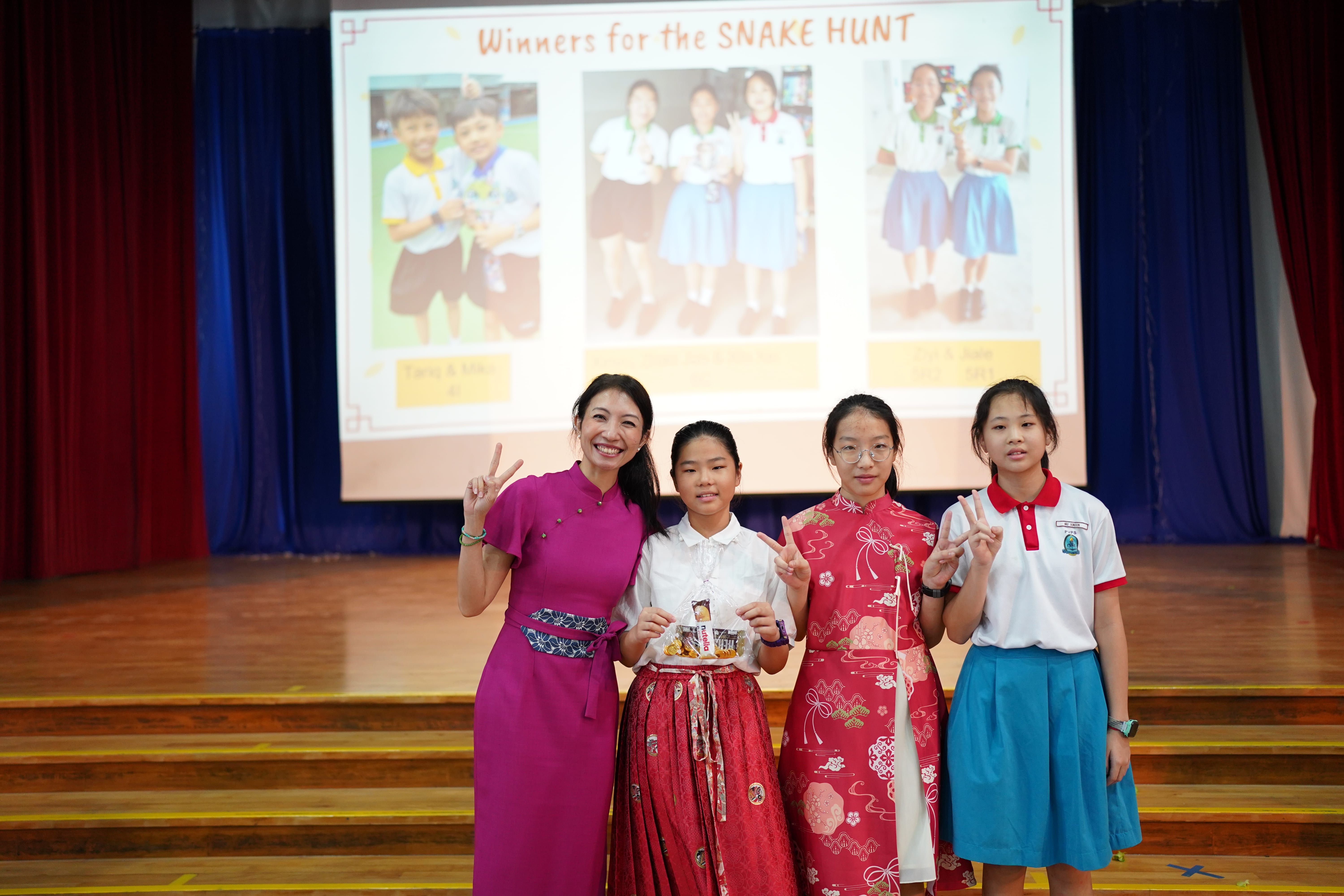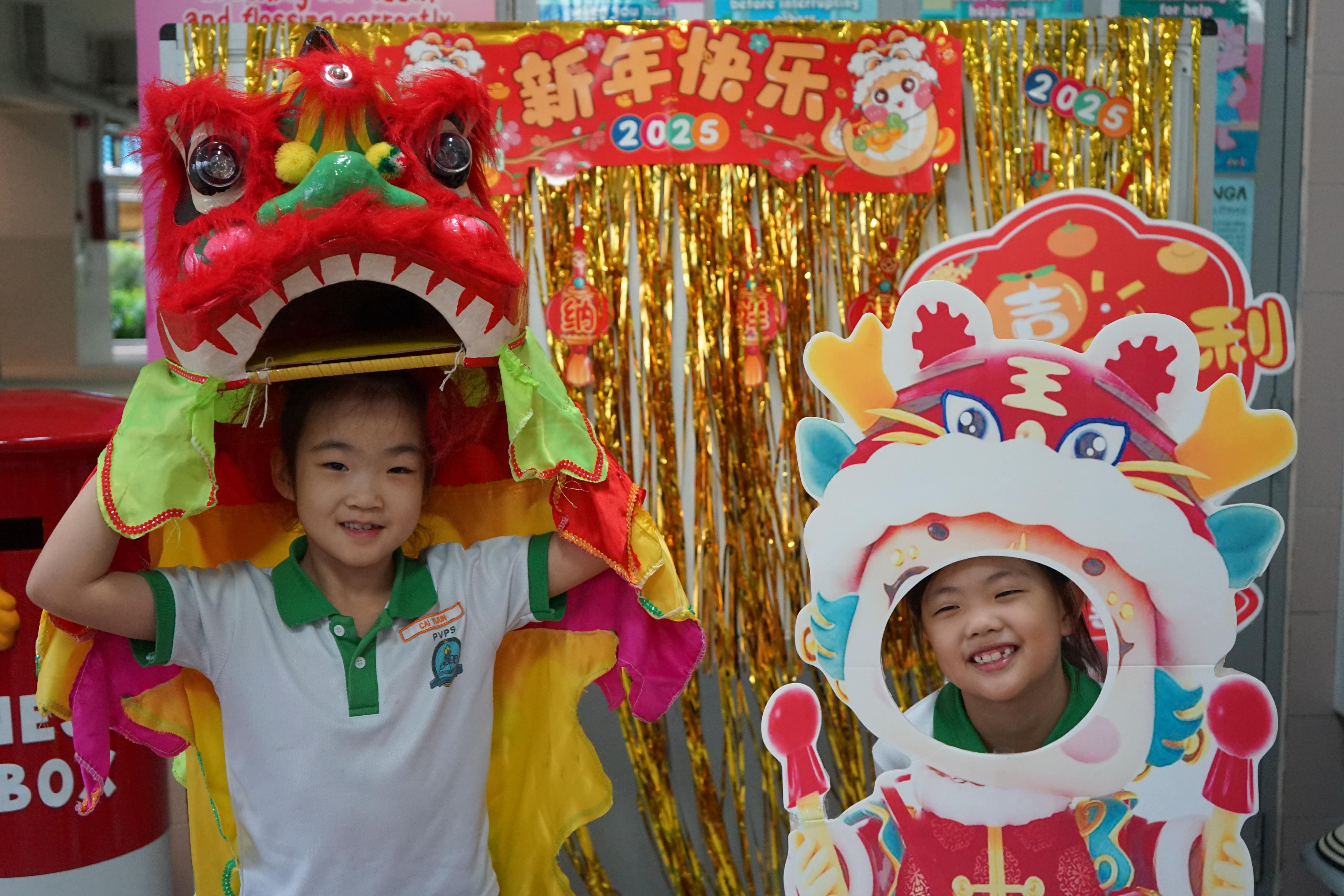 百惠的师生们每年都会举行多种多样的文化活动来庆祝农历新年。同学们除了在礼堂观看舞狮、古筝、武术等精彩的表演外,还会在课室里听老师们介绍农历新年的各种传统习俗,进行丰富有趣的手工活动。此外,华文老师和家长义工们还会趁着休息时间,在食堂设置写春联、剪纸和中国结等多个文化摊位,供同学们自由尝试。2025年的新年特色活动“寻蛇游戏”更是激起了全校同学的极大热情,纷纷忘我地投入到游戏之中,收获了无限欢乐。